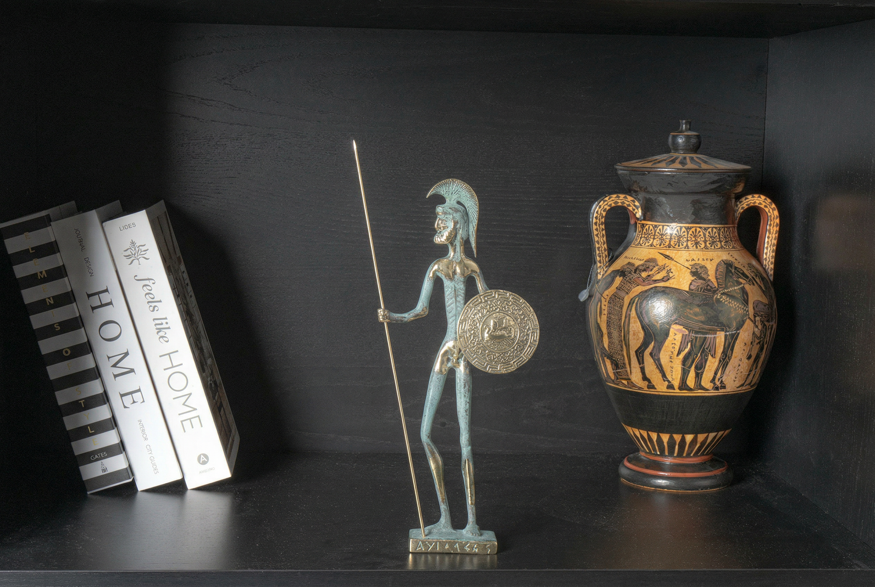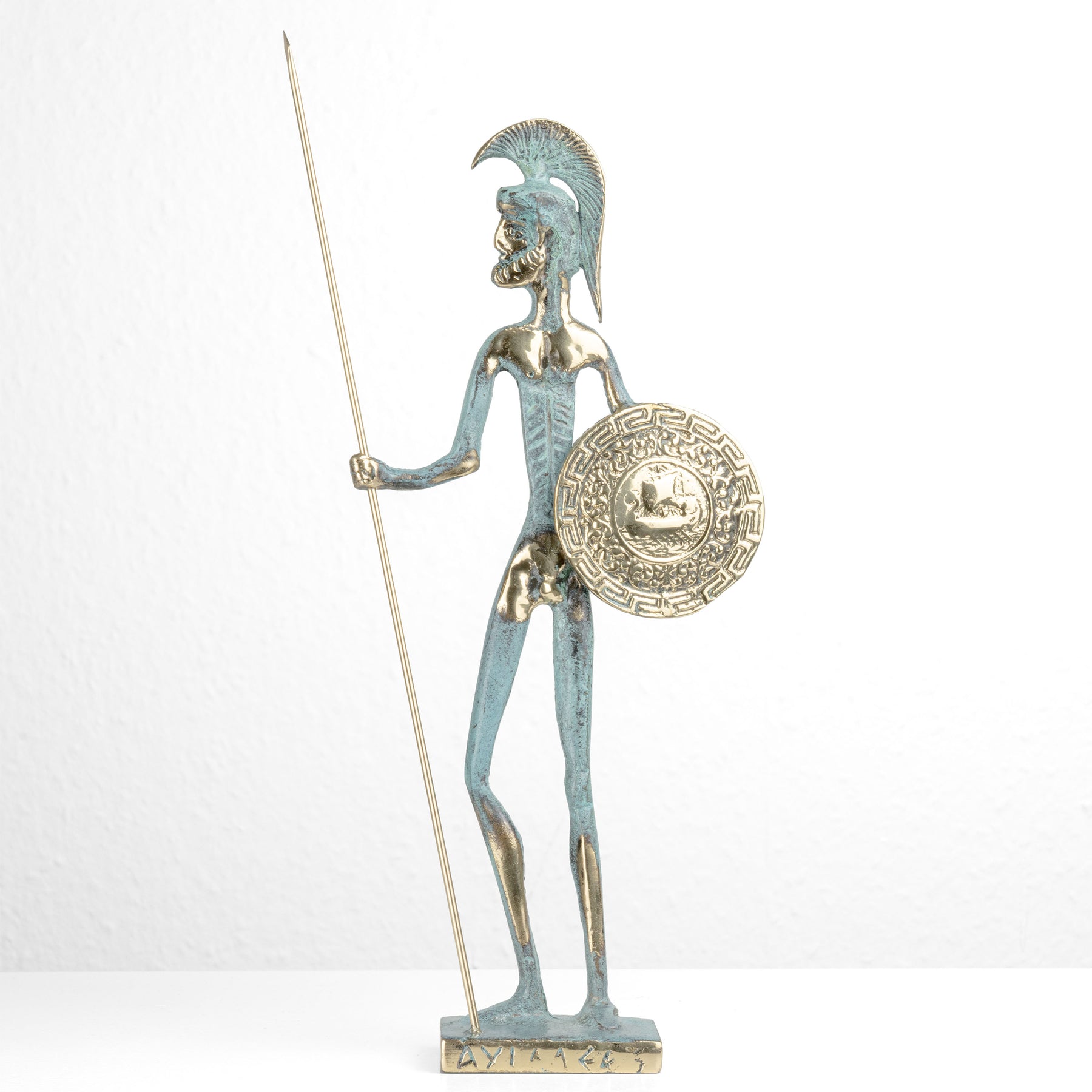 Achilles Statue — Greek Warrior with Spear & Shield (Brass Sculpture)