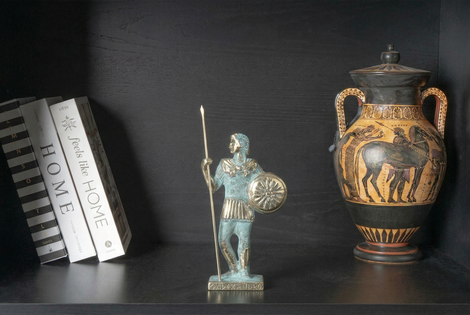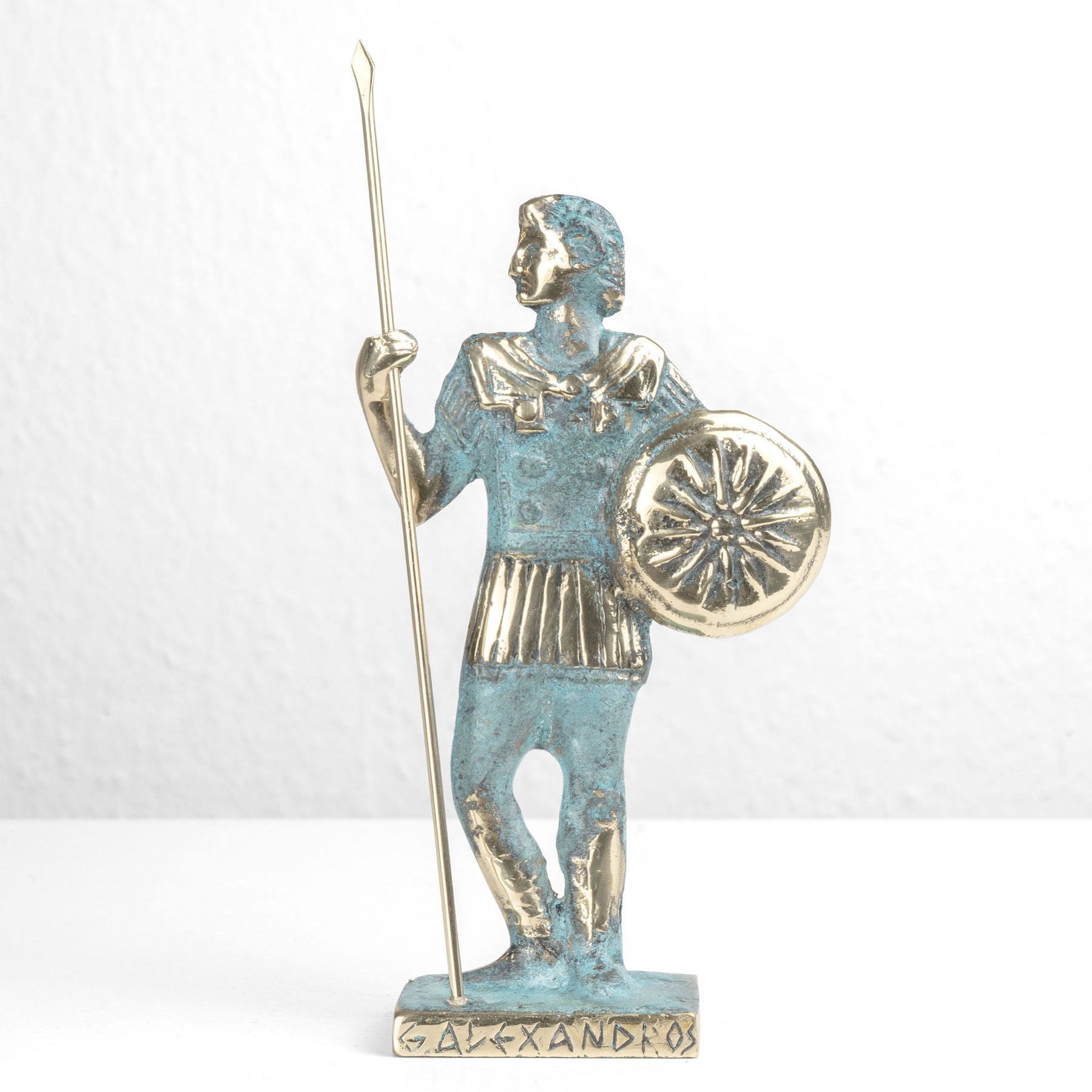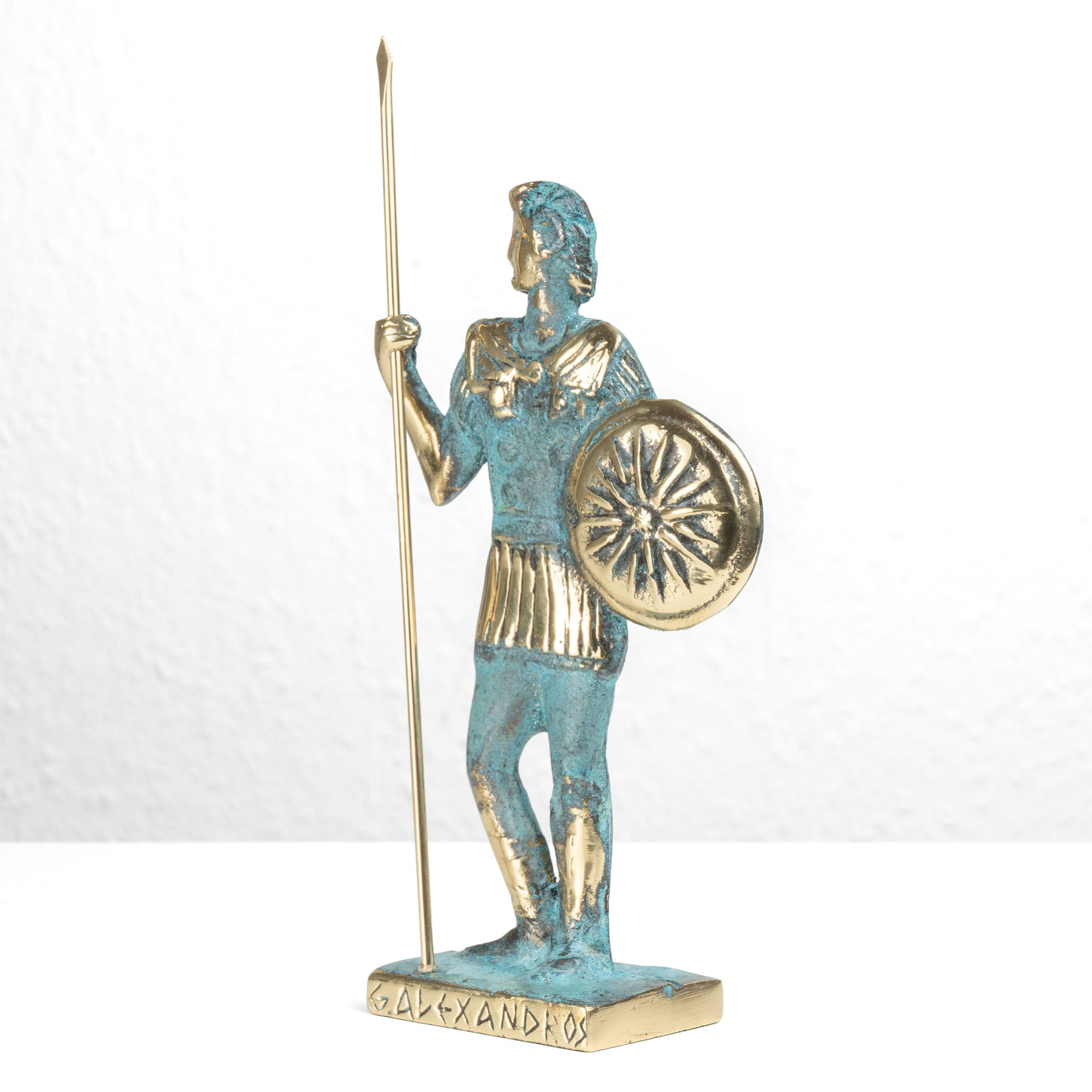 Alexander the Great Statue — Warrior with Spear & Shield (Brass Sculpture)