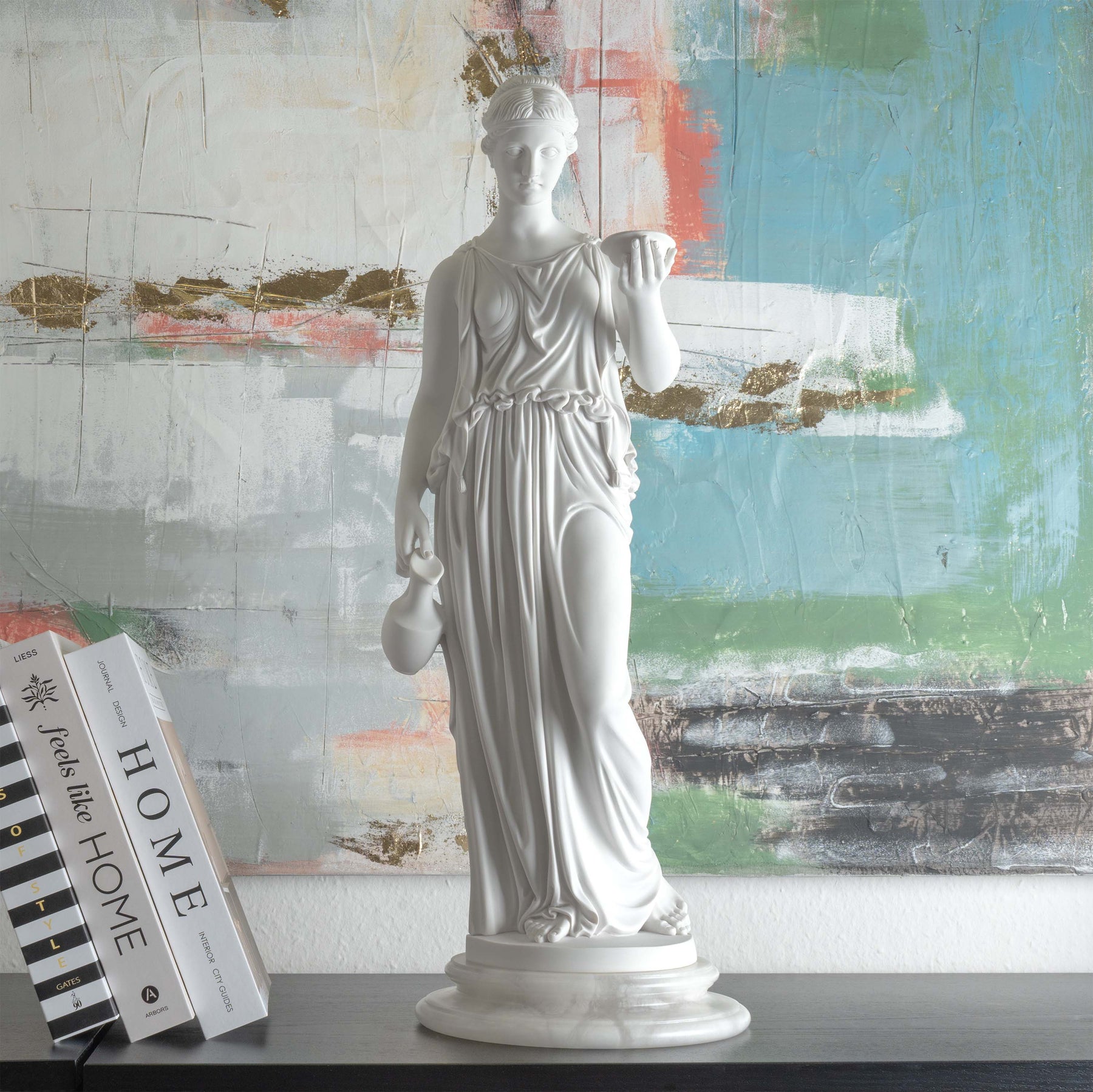 More than a decorative object, this Hebe sculpture serves as a poetic symbol of renewal, vitality, and timeless beauty. Whether placed in a modern or classical interior, it brings an air of refinement, cultural depth, and mythological resonance — a graceful reminder of youth, harmony, and the enduring ideals of classical art..